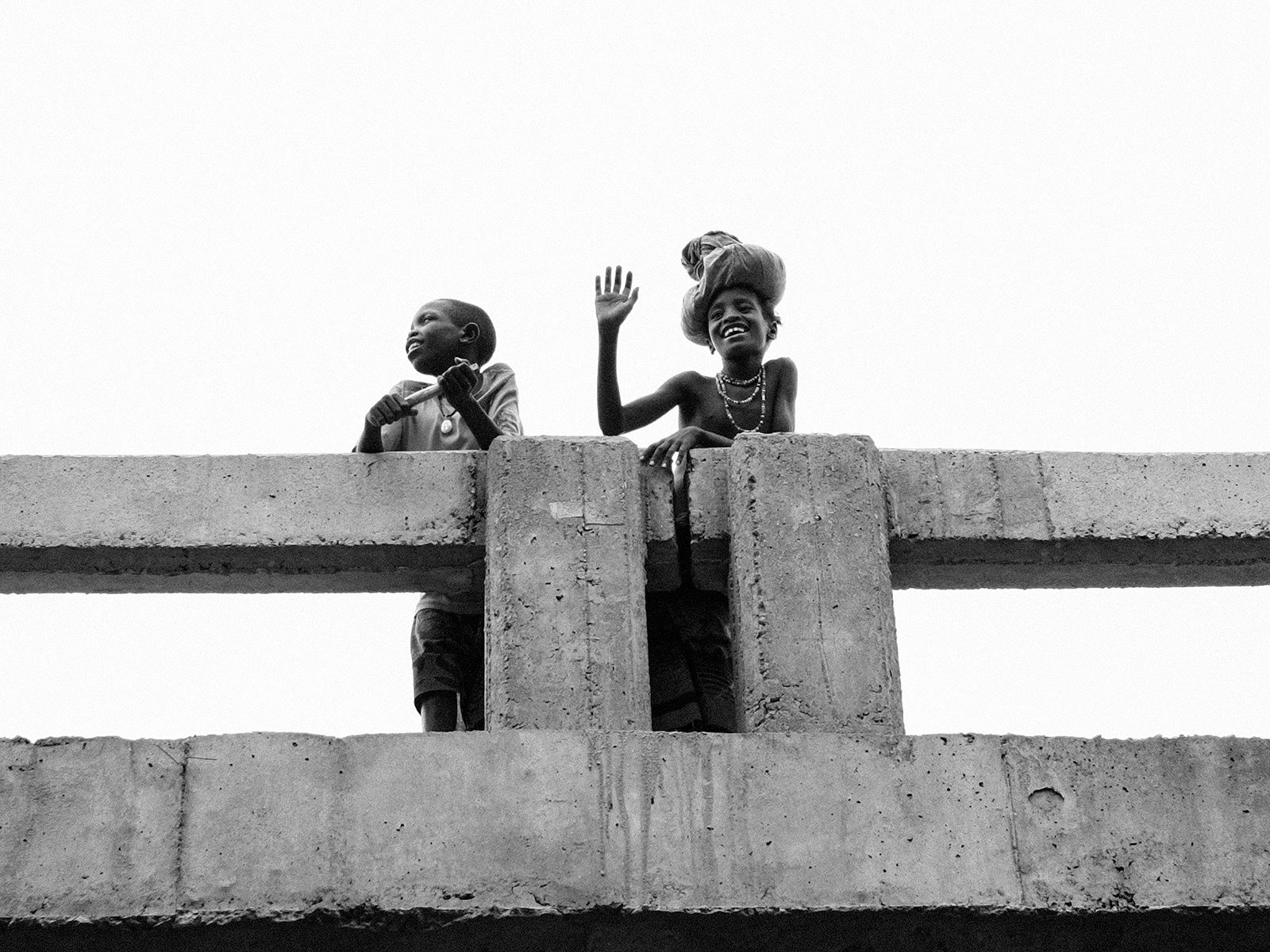 Ragazzi salutano dal ponte.