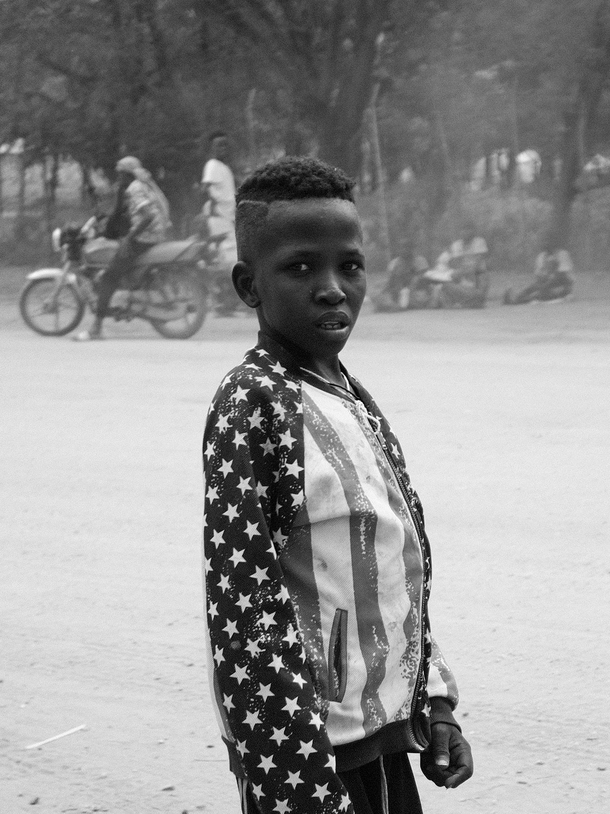 Bambino con maglia a stelle.