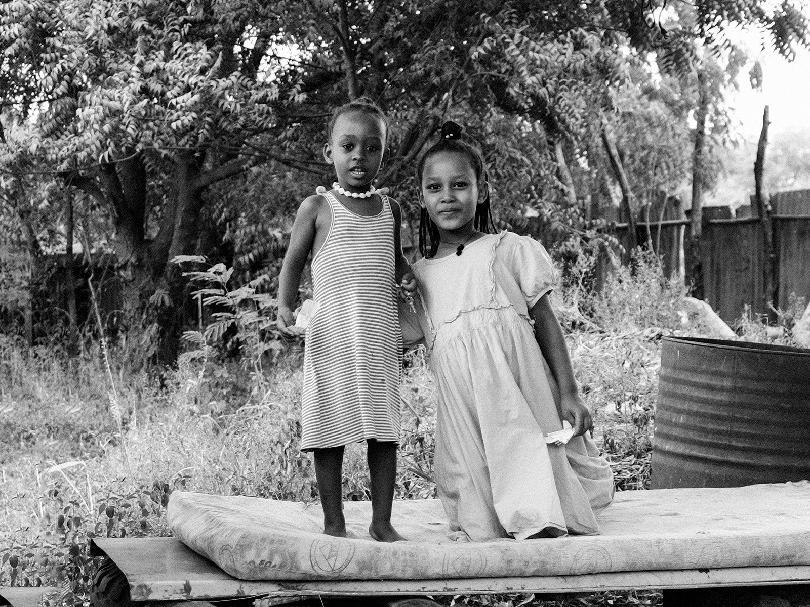 Bambine su materasso.