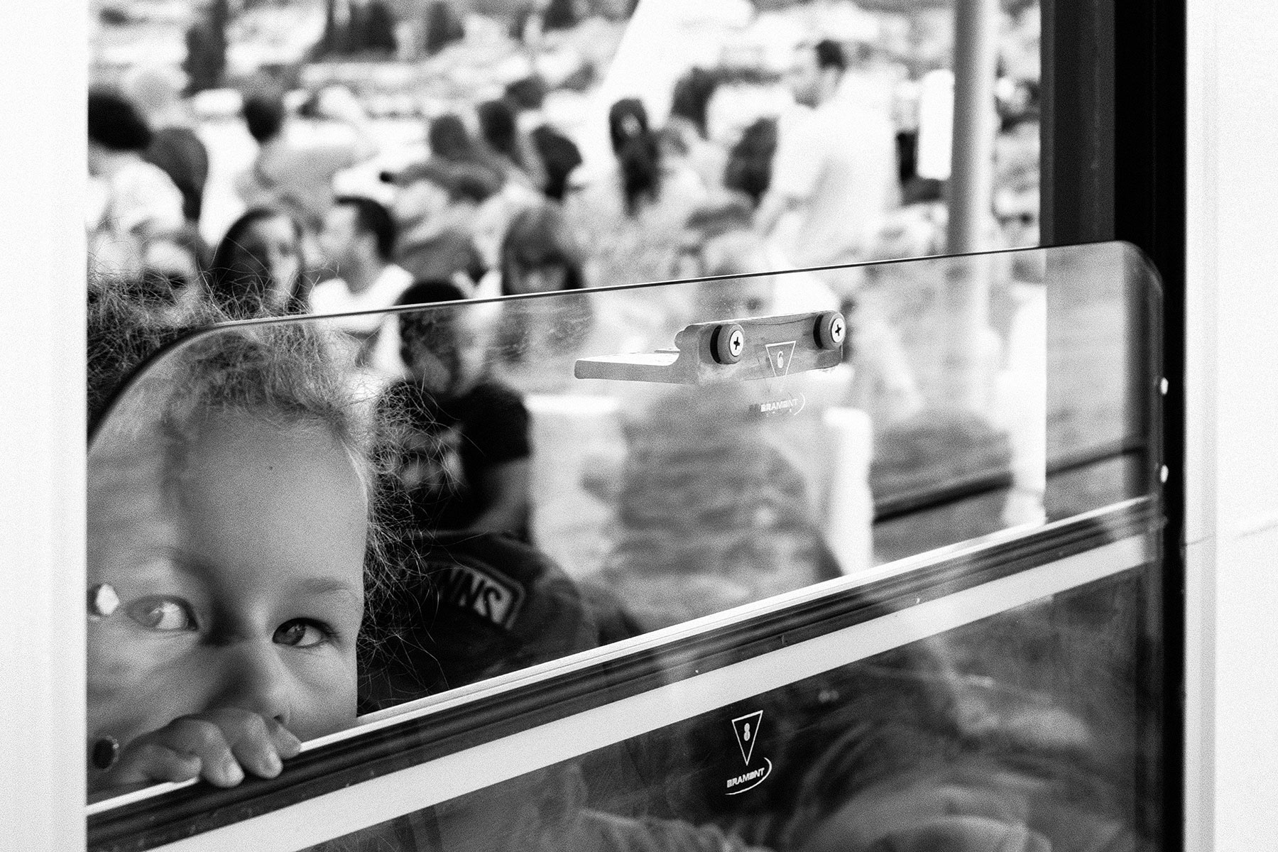 Bambina guarda fuori dal treno.